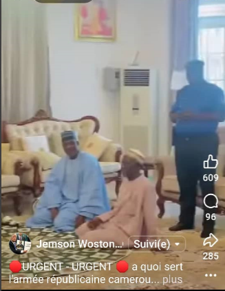 à quoi sert l’armée républicaine camerounaise incapable de protéger Issa TCHIROMA qui revendique sa victoire jusqu’à, c’est la garde présidentielle tchadienne qui vient assurer sa protection’’. Dans la vidéo, on voit des hommes armés arborant des casques bleus. Ils font allégeance à un homme assis dans un canapé vêtu d’une gandoura de couleur blanche. La vidéo a été partagée 285 fois et totalise 96 commentaires pour plus de 600 réactions au 21 octobre 2025 vers 18H. Le profil de ce compte a été verrouillé quelques jours plus tard. Mais d’autre compte ont partagé la vidéo. Après vérification avec des outils disponibles, nous sommes en mesure d’affirmer que cette vidéo est FAUSSE.